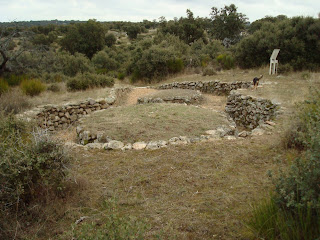 http://www.ffil.uam.es/antigua/piberica/viriato/viriato3.htm#120Cuando se visita la necrópolis, es difícil dejar de observar que las estructuras circulares entre las que se hallaron los enterramientos parecen formar una especie de esquema, combinando estructuras de diferentes tamaños, en distinta disposición en cada grupo; dándose la particularidad de que en ocasiones, entre los círculos puede observarse algún rectángulo.